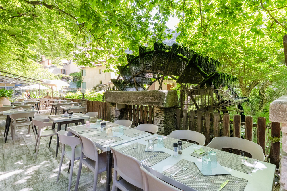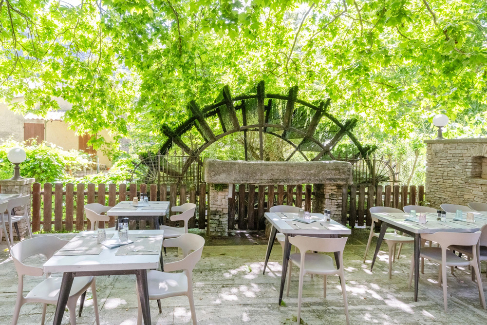 Le cadre exceptionnel, à l’ombre des grands arbres, à côté d’un cours d’eau, et accompagnés d’une roue.